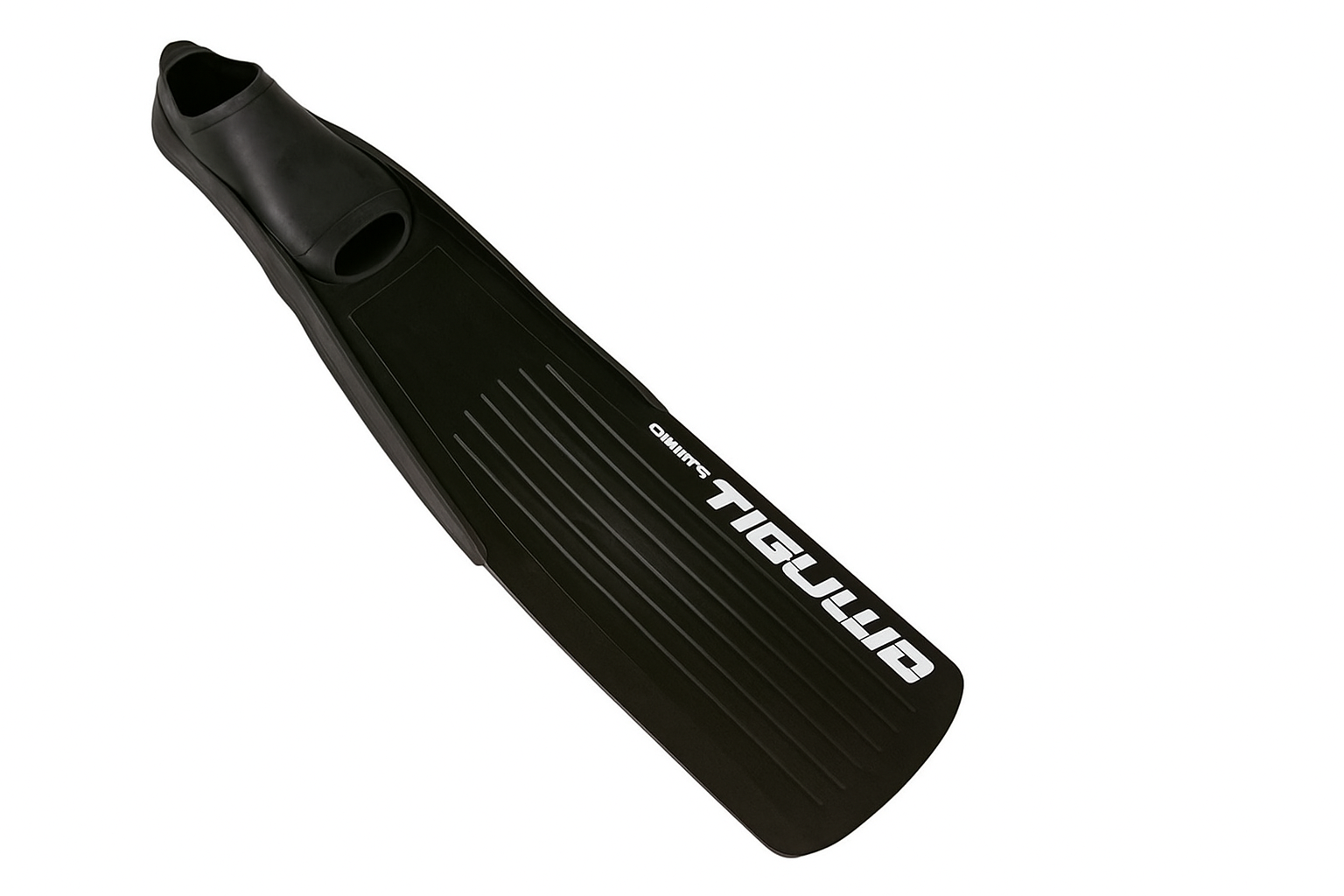 Aleta de buceo negra marca Tigulli, diseñada para ofrecer potencia y eficiencia bajo el agua. Su estructura larga y flexible mejora el impulso en cada patada, ideal para buceo libre o apnea. Fabricada con materiales resistentes y de alta calidad.